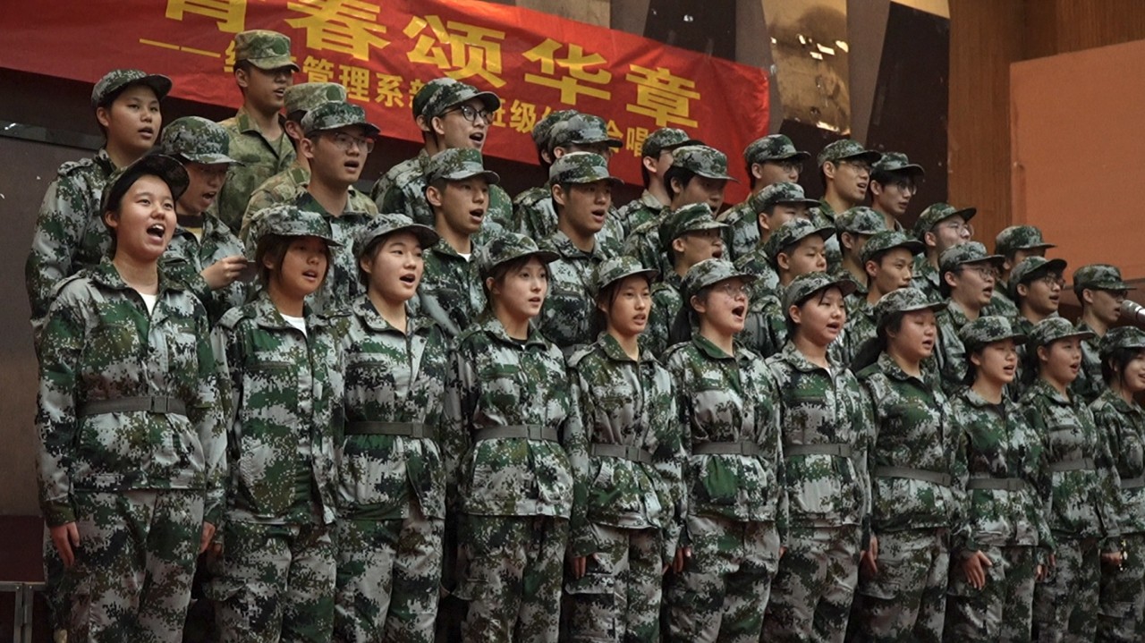 比赛现场灯火璀璨、气氛热烈。各班级参赛队伍身着整齐服装,精神抖擞依次登台。《我爱你中国》旋律悠扬,饱含对祖国的深情眷恋;《我和我的祖国》节奏激昂,唱出青年与祖国的血脉相连;《精忠报国》铿锵有力,尽显民族不屈气节;《保卫黄河》雄壮豪迈,再现中华儿女抗敌壮志;《团结就是力量》《没有共产党就没有新中国》耳熟能详,传递出凝心聚力、紧跟党走的坚定信念。参赛队伍以饱满热情与精湛演技,赢得现场阵阵掌声与评委一致好评。