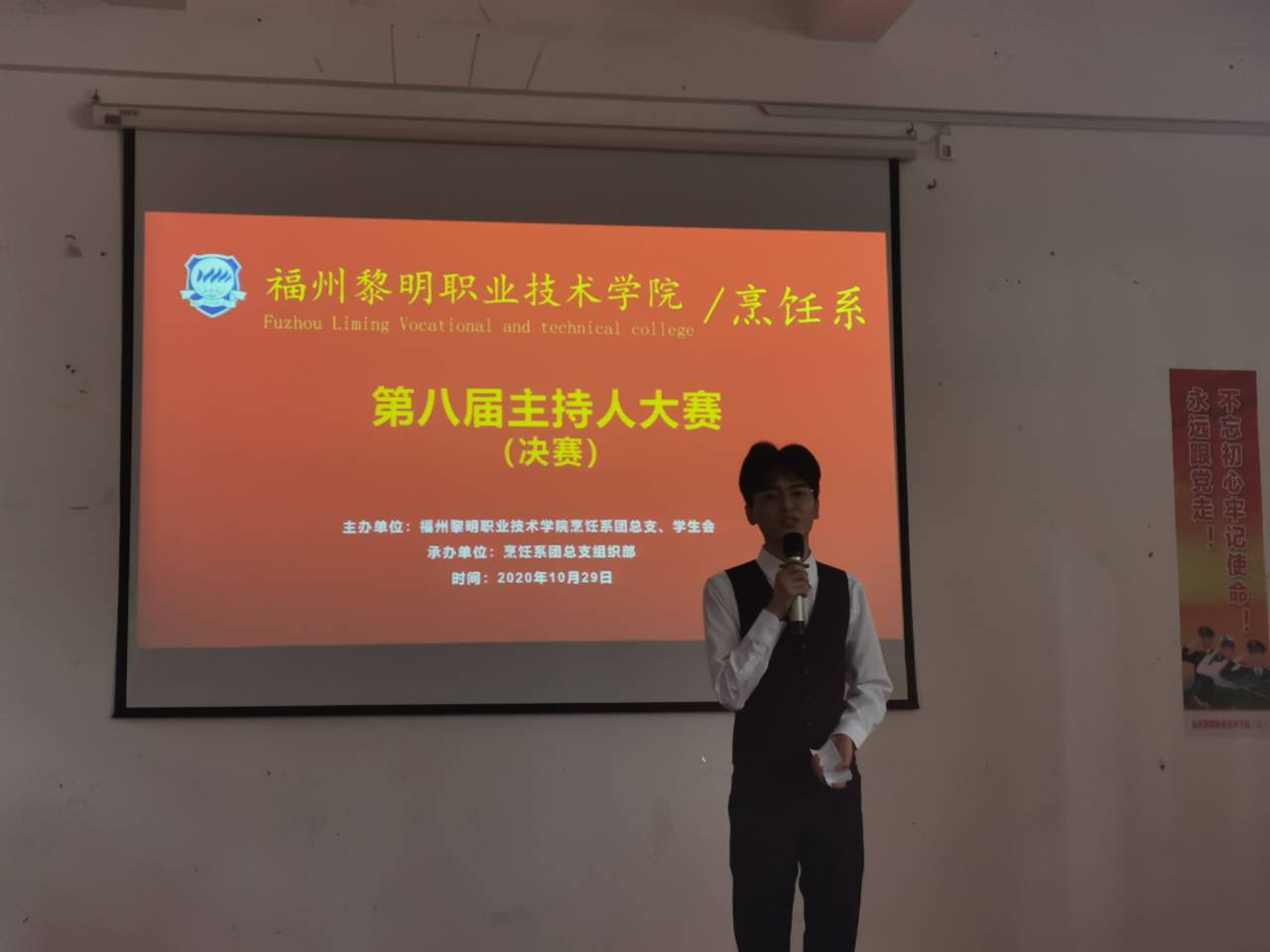 为丰富校园文化生活,展现当代大学生聪明、机智、活泼的青春风采,10月29日下午,我系主持人演讲决赛在活动室进行。学院董事长王苏华女士、校企对接办周正主任、福屿校区管委会林功凤主任、辅导员罗钰堂老师及我系全体师生出席本次活动。