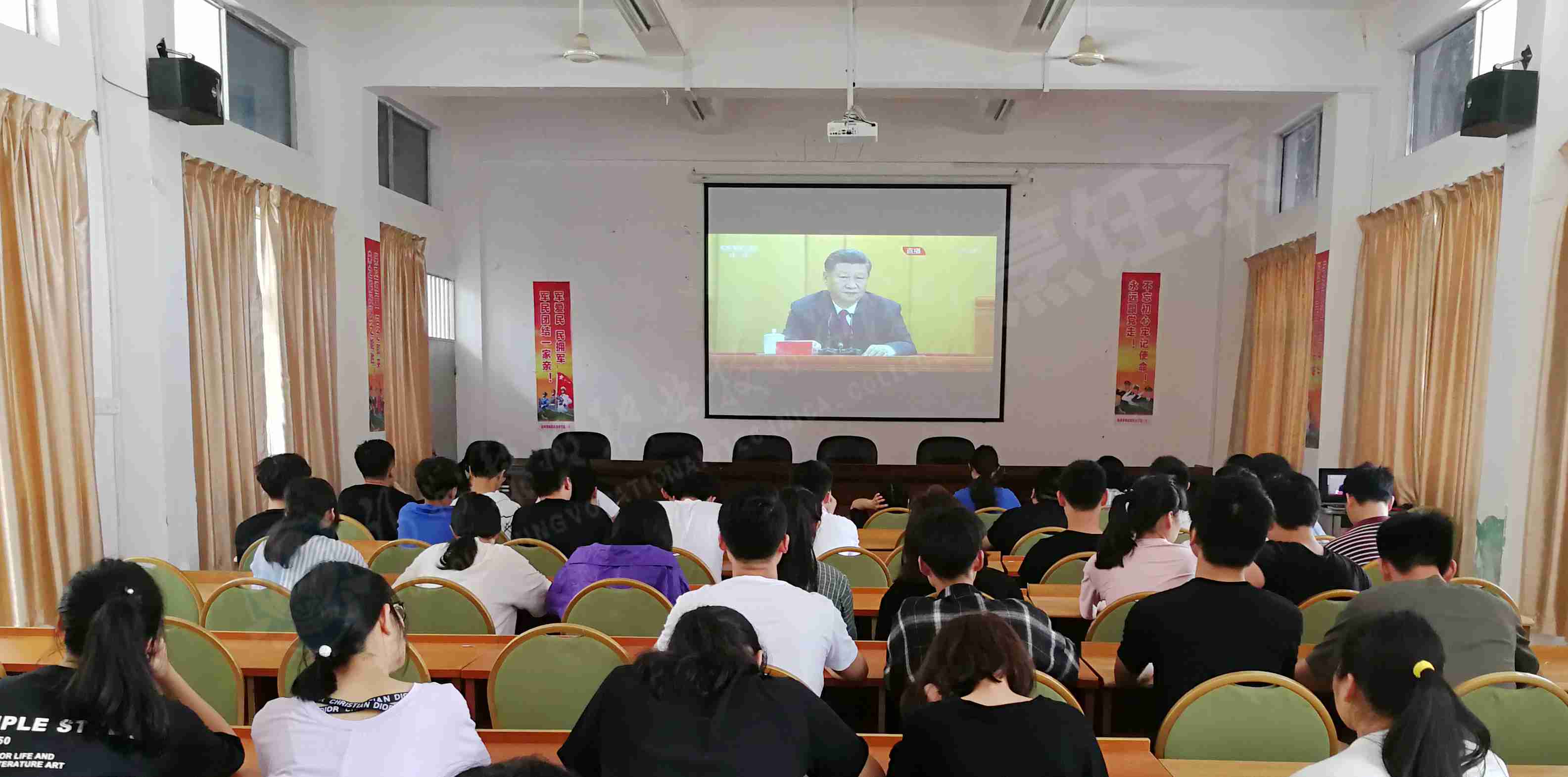 纪念五四运动100周年大会4月30日上午10时30分在人民大会堂举行。中共中央总书记、国家主席、中央军委主席习近平将出席大会并发表重要讲话。为此,烹饪系组织全体2018级学生在综合楼活动室观看大会直播,认真学习习近平总书记的重要讲话精神。