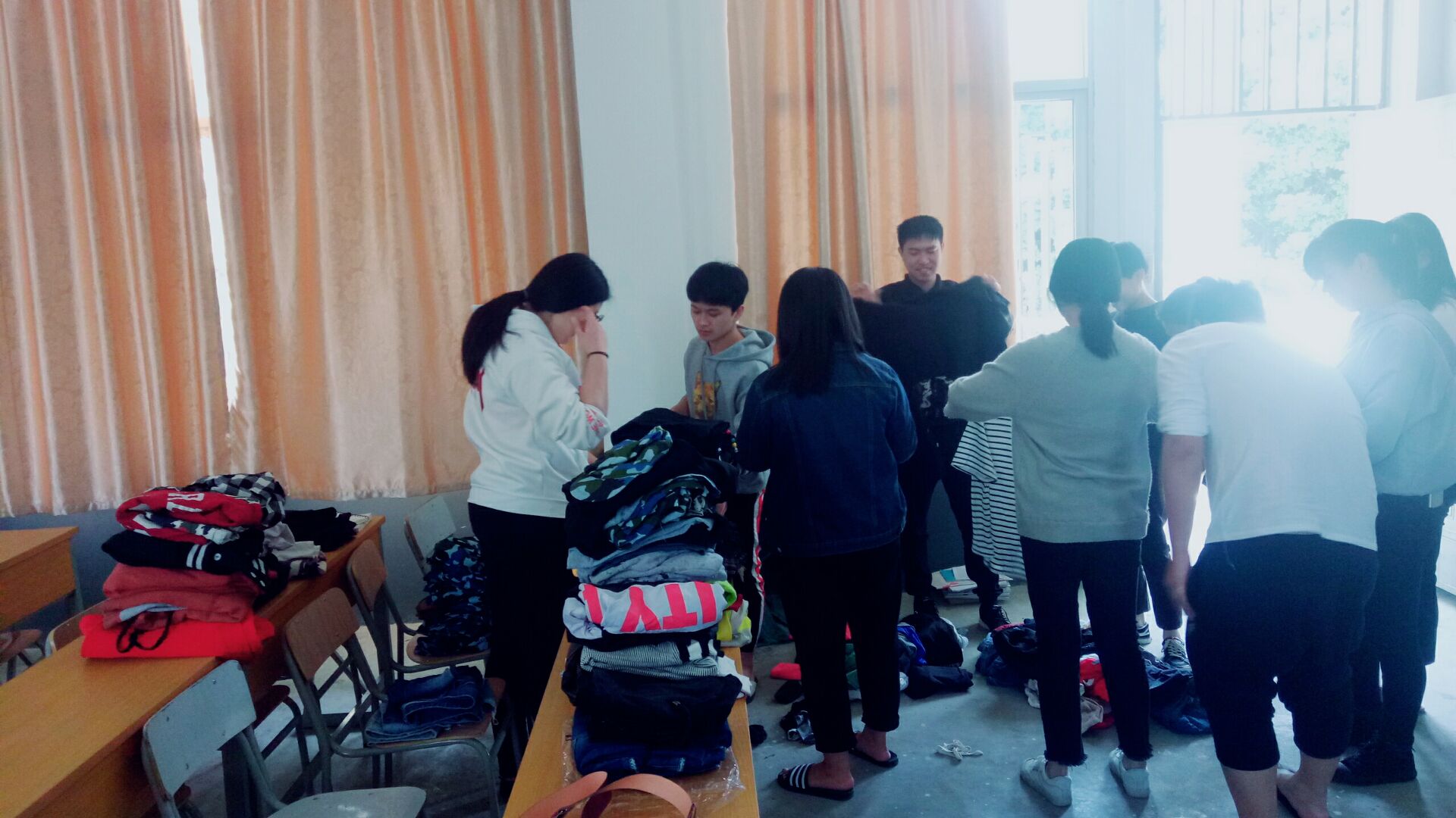 当天下午志愿者到我系同学的宿舍收集旧衣物,同学们拿出早已收拾好地不穿的衣服,还有的同学捐出了自己的玩偶。不到一个小时的时间,志愿者们收到了四、五大袋的衣物,随后他们将衣物放在教室分类别整理整齐。之后,志愿者们冒着大大的太阳将衣物送往捐赠点福州万象城负一楼。看到志愿者们忙碌的身影,就如同清晨的阳光照暖贫困山区困难家庭的内心,全系师生都希望这点滴之情能够缔结起爱的盟约。