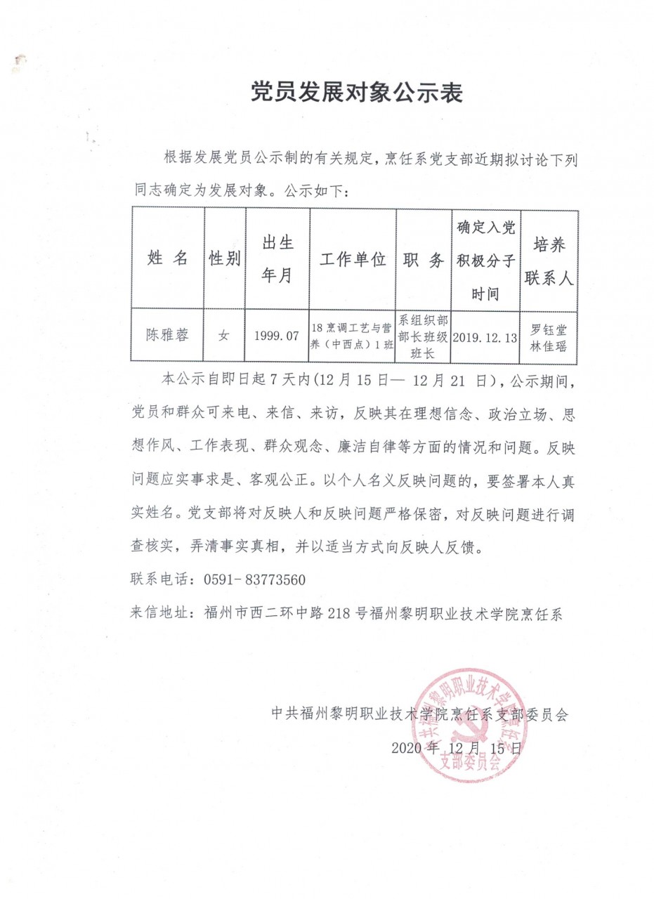 党员发展对象公示表