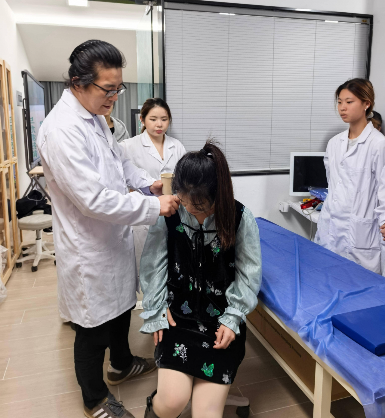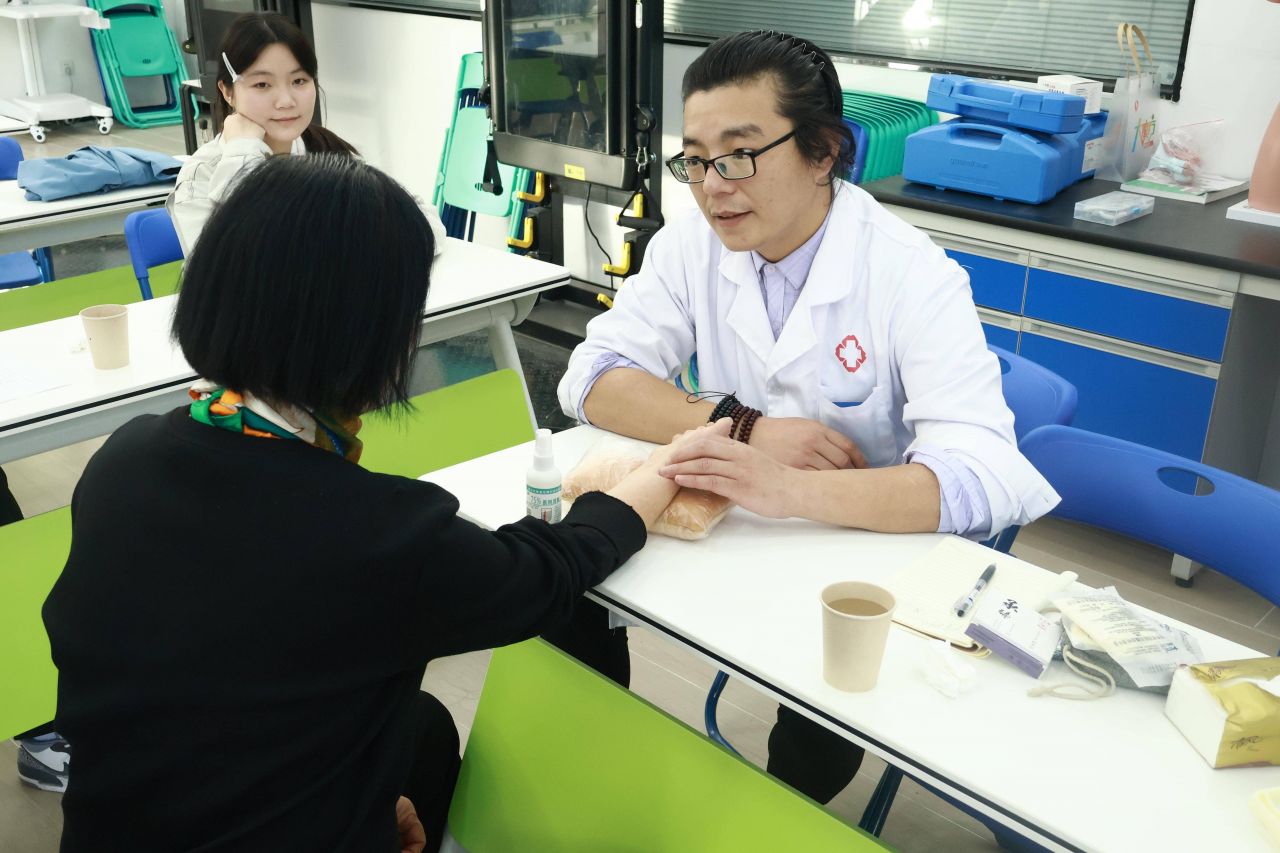 义诊活动安排在药学与健康管理系的大健康实训中心。义诊现场,两位专家分工协作:校外医生通过“望闻问切”为每位老师详细诊断,针对颈椎劳损、失眠、脾胃虚弱等常见职业病,现场实施针灸、推拿、刮痧等疗法,并开具个性化药方;校内专业教师则结合药方,耐心讲解中药配对原理及日常养生注意事项。不少老师表示:“平时工作忙,很少有机会系统调理身体,这次义诊既专业又贴心。”
