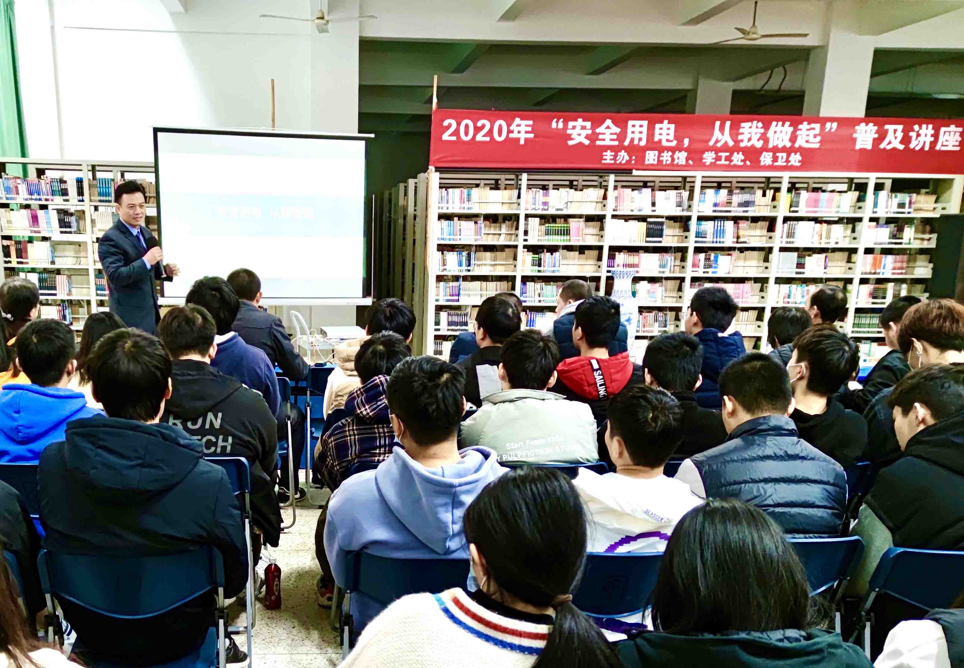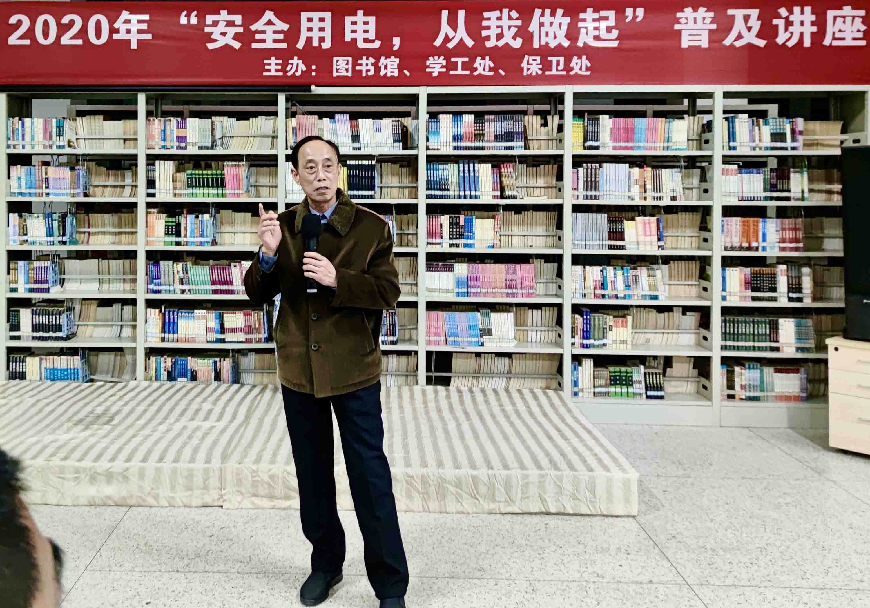 12月17日下午,由图书馆、学工处、保卫处共同主办的“安全用电,从我做起” 安全知识普及讲座在图书馆第一书库举行,院领导魏洪副院长莅临现场,师生约130人参加。