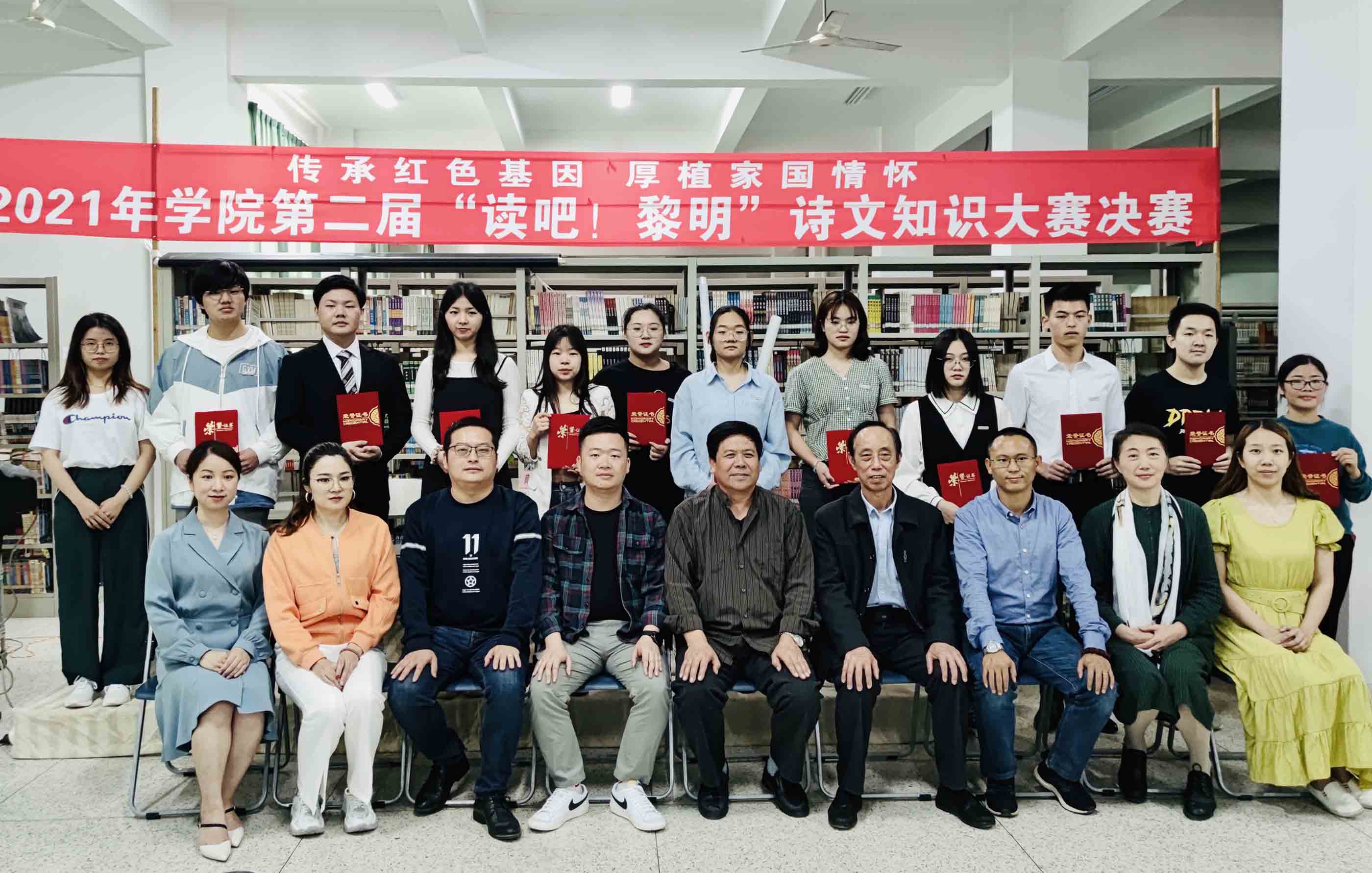 第二届“读吧!黎明”诗文知识大赛由院图书馆与院团委联合主办,配合省图书馆学会的系列活动,以“传承红色基因 厚植家国情怀”为主题,为纪念中国共产党百年华诞,传承、弘扬红色经典文化,迎接4.23世界读书日而举办。