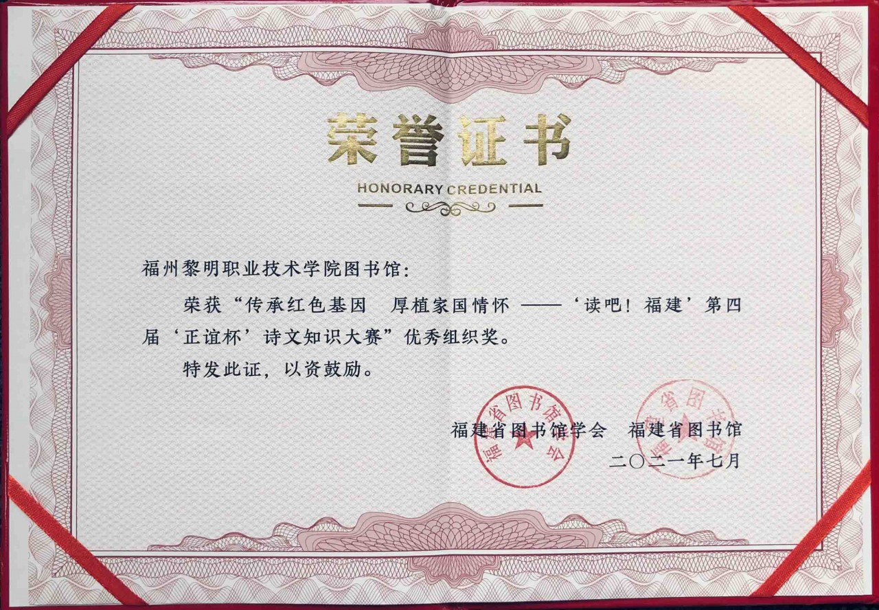 七月上旬,福建省图书馆学会、福建省图书馆遵循公平、公正、客观的原则,对全省参与组织此次大赛成绩突出的图书馆进行评选。经研议,福州黎明职业技术学院等六所图书馆在大赛过程中组织得力、成效显著、影响力较大,荣获本届大赛优秀组织奖。