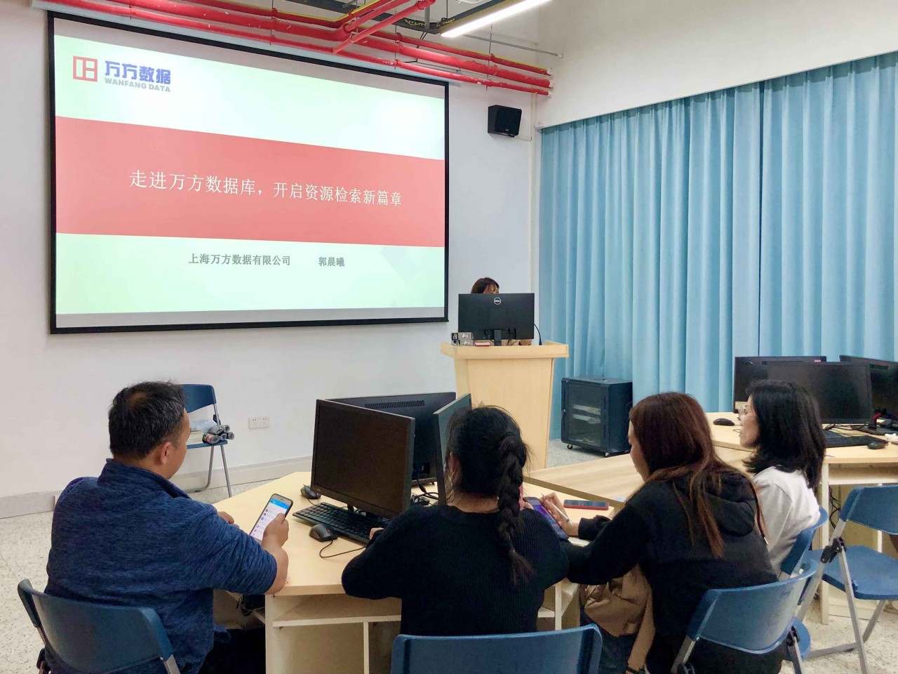本学期图书馆配合读书月活动,特邀万方知识服务平台为我院师生开展为期三个月的试用服务。同时,为提高师生信息检索能力,提升广大读者群体的信息素养水平,高效利用万方平台资源,图书馆联系万方数据公司共同举办一场培训讲座,内容包括万方知识服务平台主要功能介绍、使用场景、使用方法与技巧等。由万方数据公司专业讲师郭晨曦老师主讲。