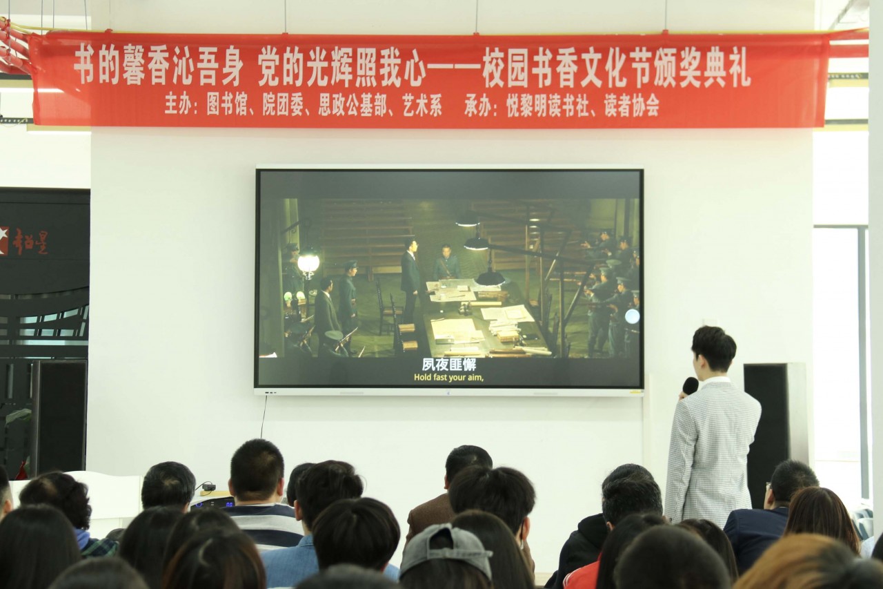 5月19日下午,由图书馆、院团委、思政公基部联合主办的《百年峥嵘•“声”临其境》——红色经典影视配音大赛决赛在图书馆举行。王苏华董事长、范超峰院长、廖诗忠书记等院领导一行莅临现场,各系(部)、处(室)负责人、评委老师、参赛选手及学生代表近130人参加。