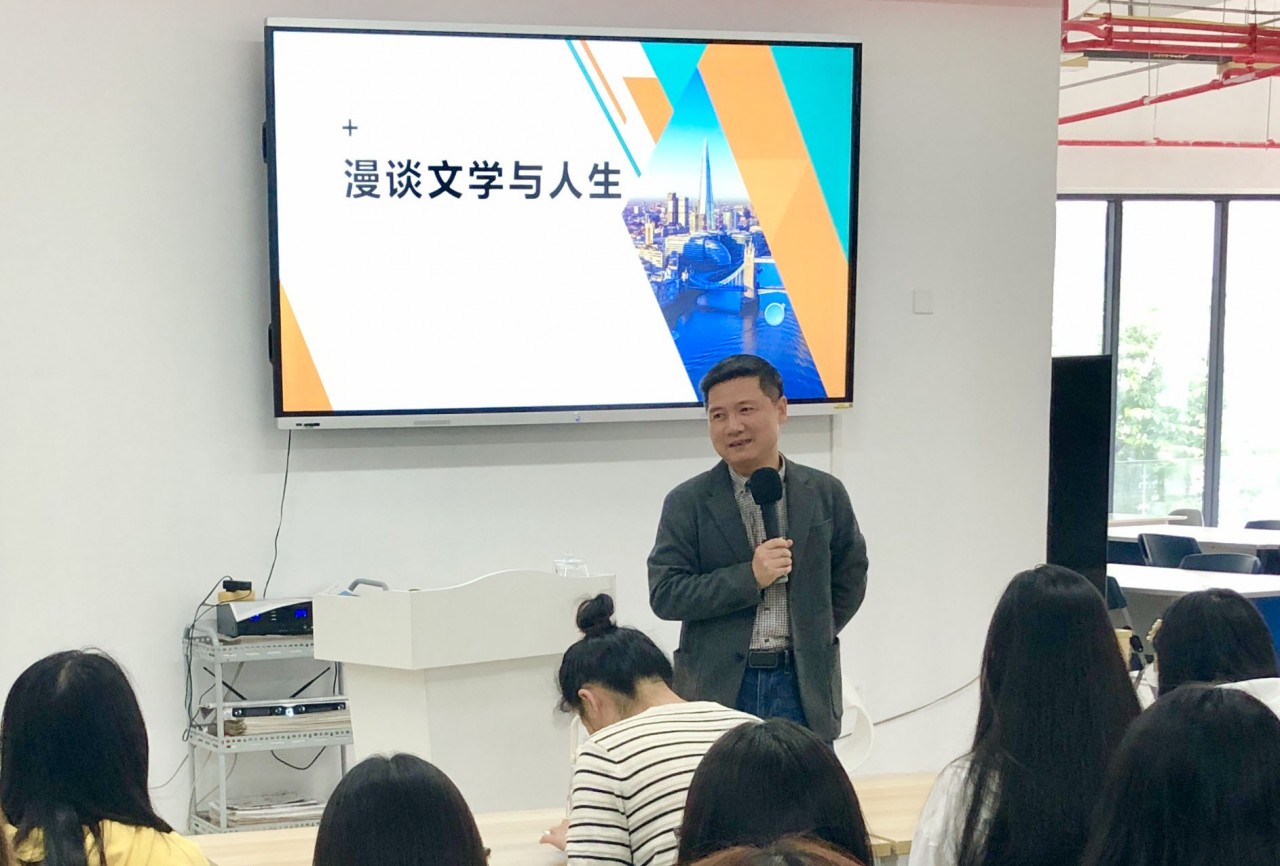 5月26日下午,图书馆特邀院党委书记、文学博士廖诗忠教授为读者举办“漫谈文学与人生”文学专题讲座。来自各系和曼奇立德产业学院学生及读者协会会员共计120余人到场聆听。