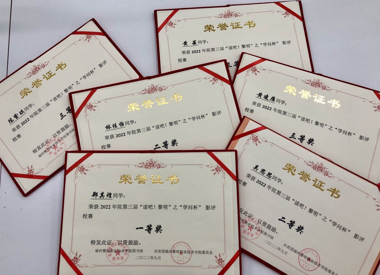 为进一步推进爱的文化对书香校园建设的引领,坚持以文化人、以美育人,培养读者在观影中坚定理想信念,提高审美情操,自3月15日起,图书馆与院团委联合举办福州黎明职业技术学院第三届“读吧!黎明”之“学问杯”影评校赛,在各系领导的大力支持下,历时数月圆满落幕。