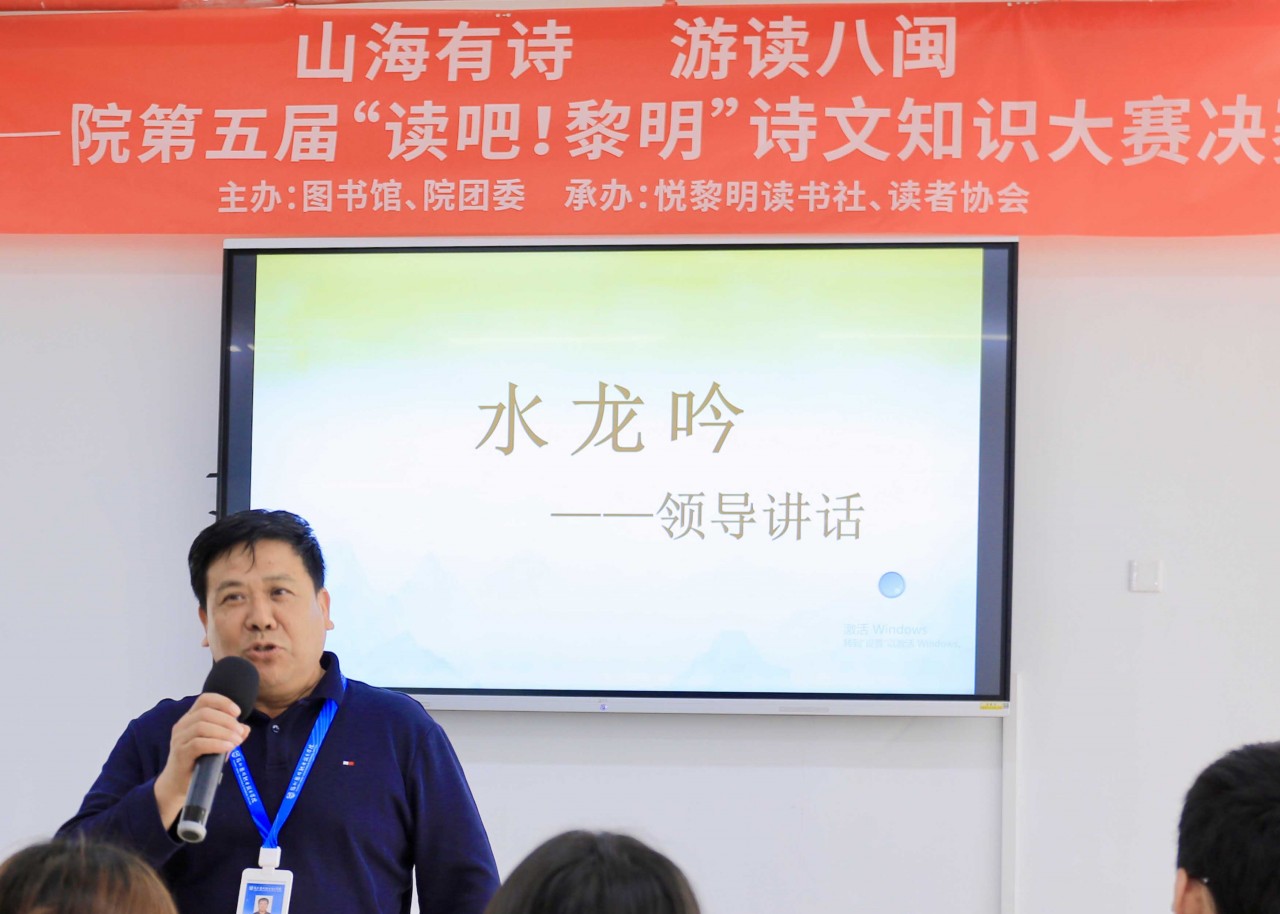 4.23世界读书日下午,学院第五届“读吧!黎明”诗文知识大赛决赛在图书馆举行。王苏华董事长、范超峰院长、廖诗忠书记等学院领导一行亲临决赛现场,评委老师、参赛选手和师生代表约140余人参加活动。