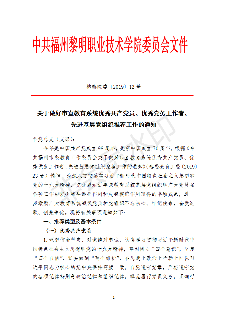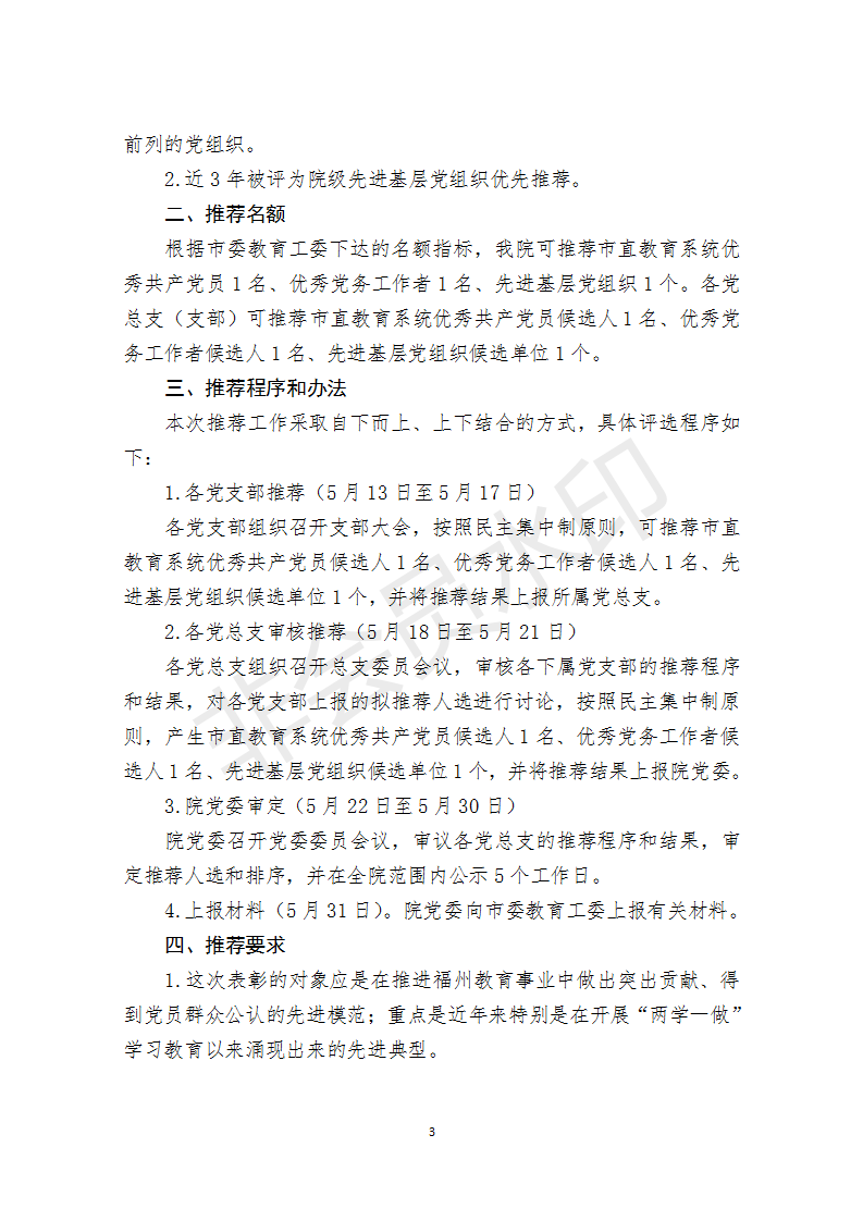 关于做好市直教育系统优秀共产党员、优秀党务工作者、先进基层党组织推荐工作的通知
