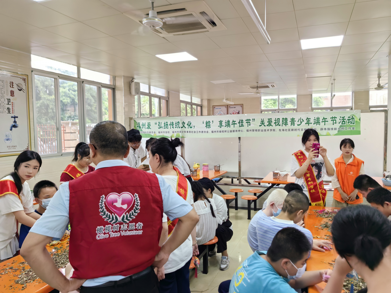 2023年6月9日,由共青团福州市委员会的“福州爱·“弘扬传统文化,‘粽’享端午佳节”关爱视障青少年端午节活动在福州市盲校食堂开展。