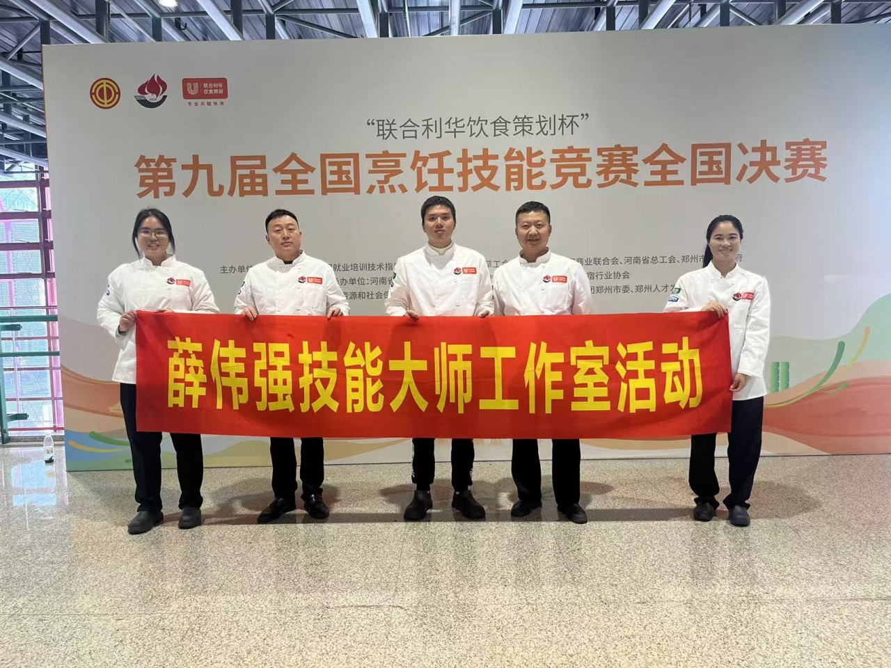 12月1日,由中国烹饪协会、中国就业培训技术指导中心、中国财贸轻纺烟草工会、中国商业联合会、河南省总工会、郑州市人民政府共同主办的联合利华饮食策划杯第九届全国烹饪技能竞赛全国决赛,在郑州隆重开幕。薛伟强技能大师工作室成员参加竞赛。