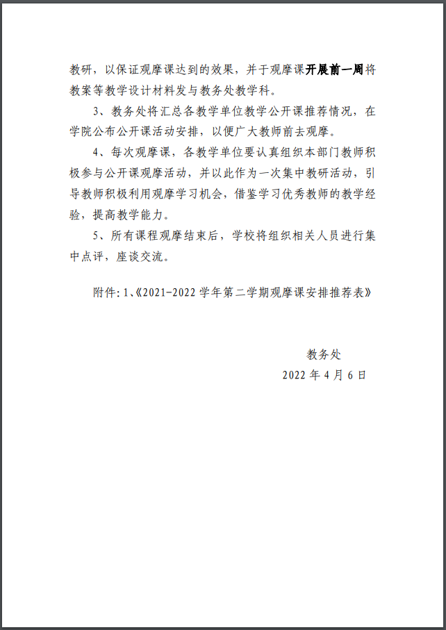 关于开展2021-2022学年第二学期教学观摩课的通知