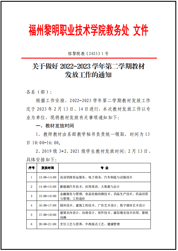 关于做好2022-2023学年第二学期教材发放工作的通知