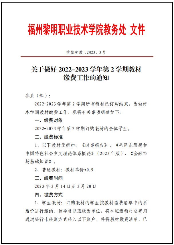 关于做好2022-2023学年第2学期教材缴费工作的通知
