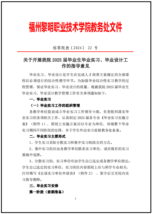 关于开展我院 2025 届毕业生毕业实习、毕业设计工作的指导意见