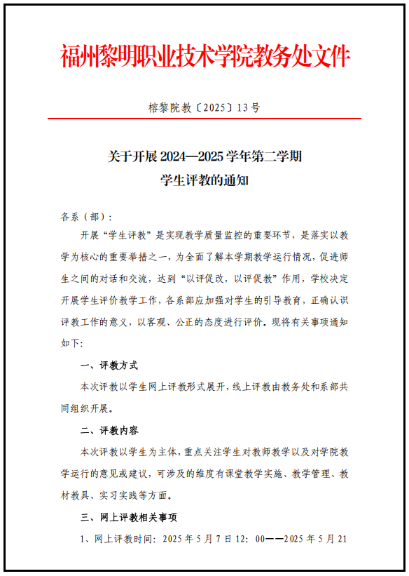 关于开展 2024—2025 学年第二学期学生评教的通知