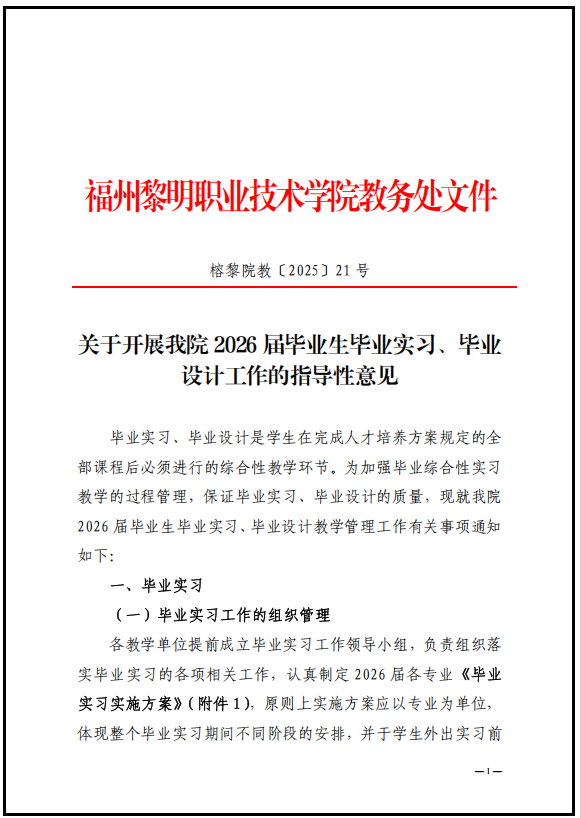 关于开展我院 2026 届毕业生毕业实习、毕业 设计工作的指导性意见