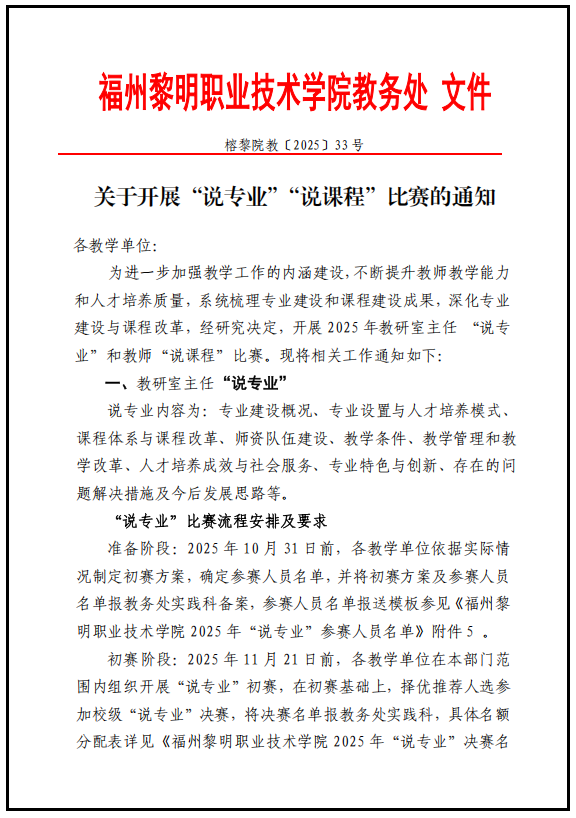 关于开展“说专业”“说课程”比赛的通知