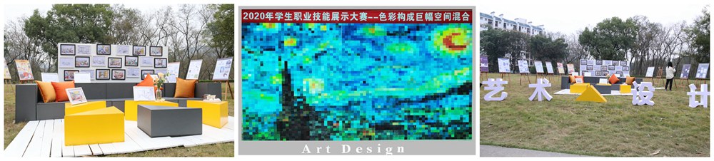 艺术设计系展示了平面设计技术、色彩构图(巨幅空间混合)、手绘表现等项目的学生优秀作品,最具震撼力的是一巨幅名画——梵高的《星空》,由艺术设计系7个班级300多名学生共同完成11米×9米巨幅星空手绘色彩构成,还原这幅目前珍藏在纽约现代艺术博物馆名画,让人仿佛置身于1889年的法国,感受星空下的浪漫!艺术系还在机房进行了3D模型制作、Flash动画制作等实操竞赛,比赛现场参赛选手冷静思考、沉着构图,充分展示了自己的设计才华和技能。