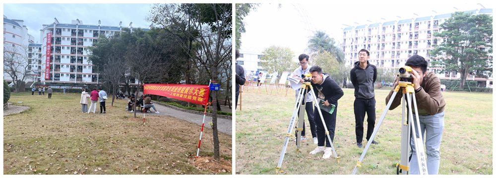 建筑工程系主要以机房实操竞赛为主,展示了建筑CAD、工程造价基本技能、建筑制图等具有专业特色的项目。此外,室外竞赛活动“工程测量技能竞赛”,设置了闭合水准测量、普通水准测量两个赛项,重点考察学生对于工程测量综合应用的能力,比赛现场上,参赛选手们调平脚架动作娴熟、操作仪器全神贯注、计算数据专心致志、测点转换放肆奔跑,无疑成了校园草坪上一道亮丽的风景线。