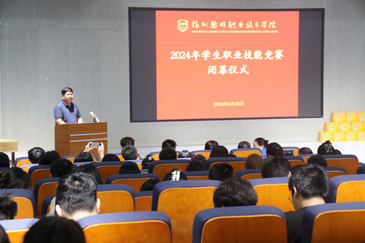 闭幕式上范超峰院长发表讲话,首先向此次参赛选手们的精彩表现和优异成绩表示热烈祝贺,向潜心执教、精心指导的教师和严格评判、公平公正的裁判员,以及辛勤工作、细致周到的工作人员表示亲切慰问,向所有关心支持本次大赛的各界人士表示衷心的感谢。其次目前我们虽然取得了一些成绩但仍存在许多不足之处,同学们的进步空间还很大,希望同学们能以技能大赛取得的成绩为新的起点,再接再厉,精益求精,发扬工匠精神,争当能手,为校争光,为社会作出贡献;希望全校教职工紧紧围绕学校工作岗位,爱岗敬业,教书育人,增加质量意识、责任意识和竞争意识,爱岗敬业,教书育人,积极投身到学校的建设中,共同为职业教育高质量发展而奋斗。