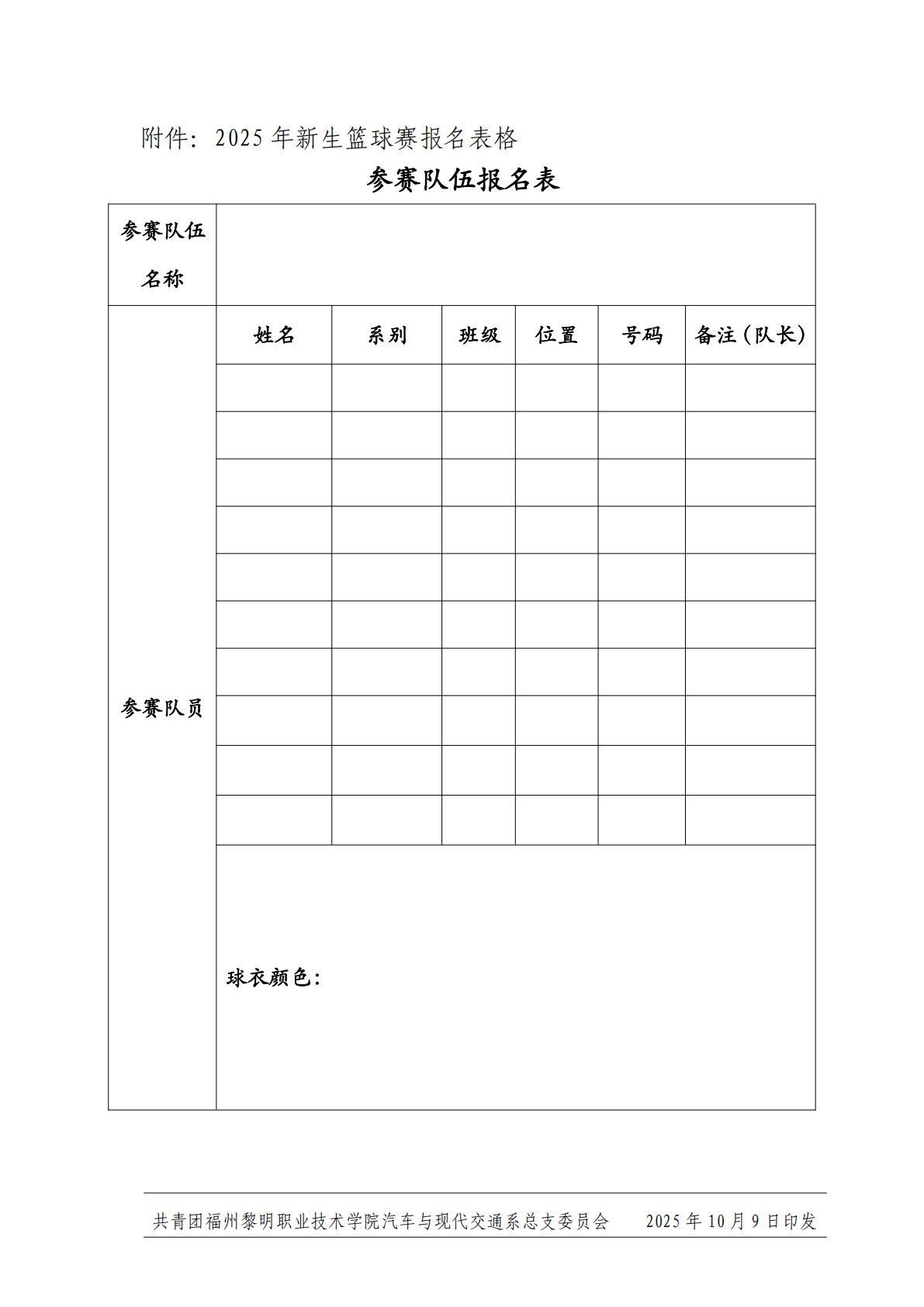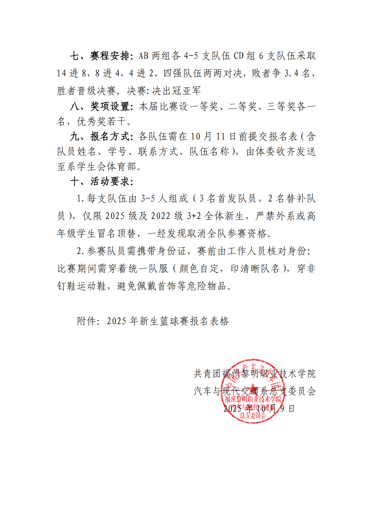 关于举办汽车与现代交通系 2025 年新生篮球赛通知