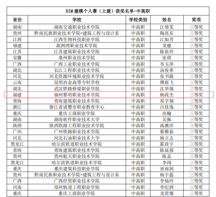 近日,第十七届全国高等院校学生“斯维尔杯”数字城市创新技术与应用大赛BIM建模个人赛公布获奖名单。在我系造价专业王敏洁、蔡依晴两名教师的精心组织与指导下,23级造价陈杰同学荣获一等奖、24级造价杨政杰荣获三等奖的好成绩,恭喜以上获奖师生。