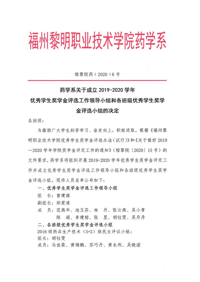 关于成立2019-2020学年优秀学生奖学金评选工作小组的决定