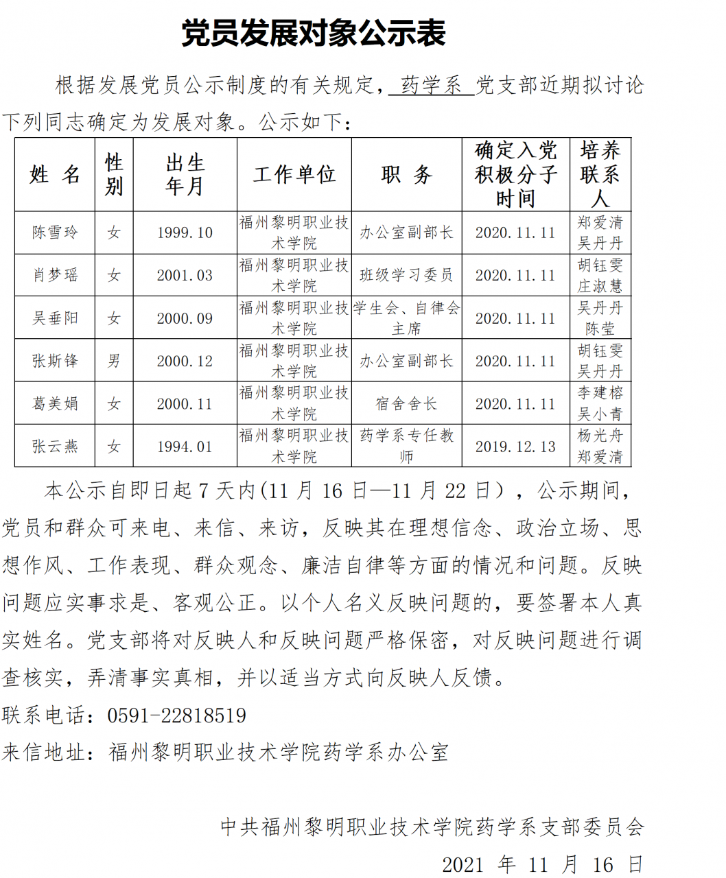 党员发展对象公示表