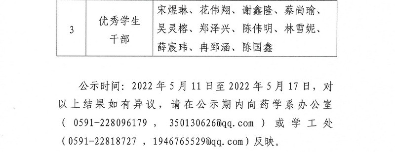 关于评选表彰2021-2022学年度学院先进班集体和三好学生、优秀学生干部的公示