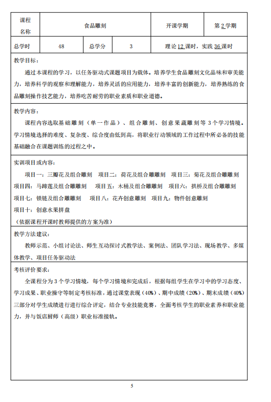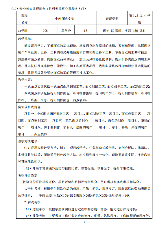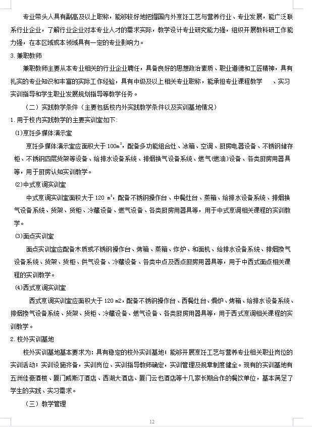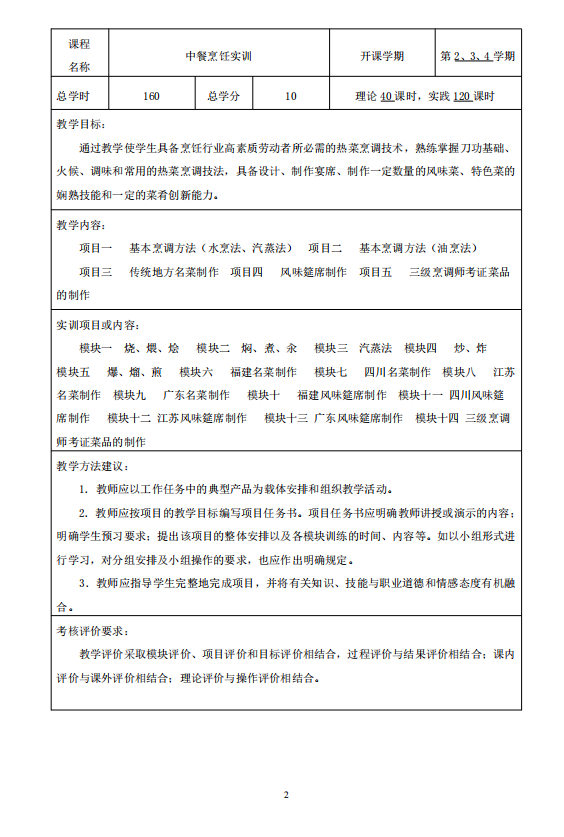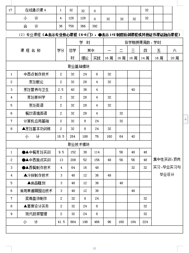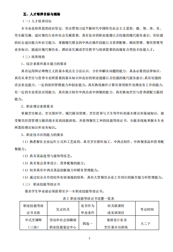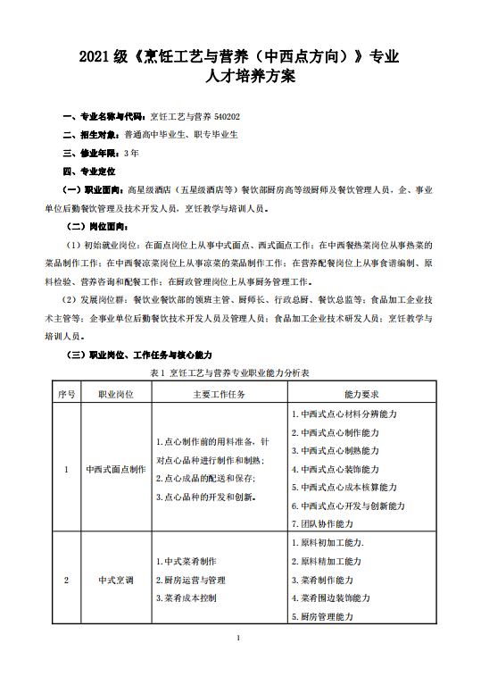 2021烹饪工艺与营养(中西点方向)人才培养方案