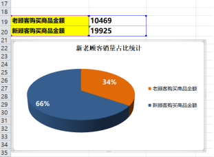 Step07:引导学生通过图表,得出数据分析结果:老客户购买商品金额仅占34%,在对当前老客户进行维护的同时,还要争取发展更多的老客户。
