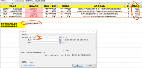 2) 通过分析新老客户的销量的需求(条件数据规则格式的设置、SUBTOTAL函数使用),掌握调整店铺的销售策略。