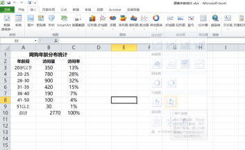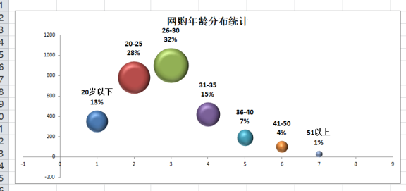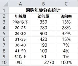 通过分析买家年龄,掌握各个年龄阶段的销售比例,以便调整店铺销售策略。根据制作的顾客年龄统计图表可以对店铺买家的年龄分布进行分析,可以看出20~25岁和26~30岁年龄段成交量占很大比重。