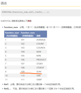 Step04:给学生解释SUBTOTAL函数的使用功能,如下图:
