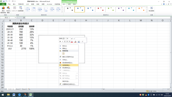 Step02:在插入的空白图表上右击,选择“选择数据”命令,如图: