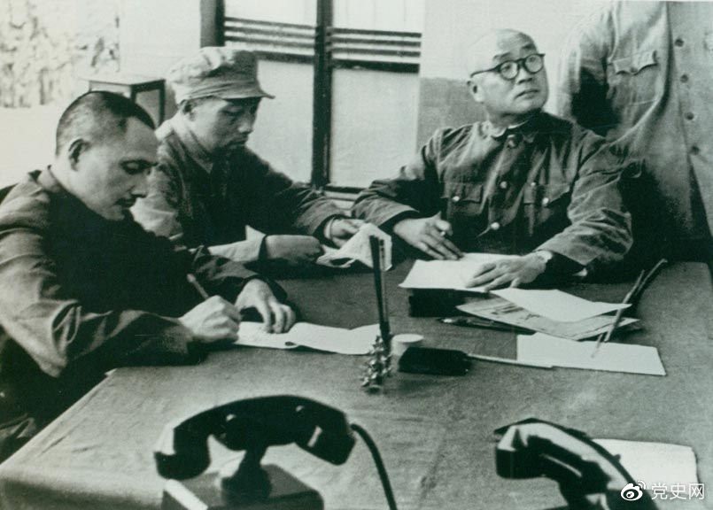 1949年11月1日起,人民解放军向西南进军。图为邓小平与刘伯承、张际春等研究进军西南问题。