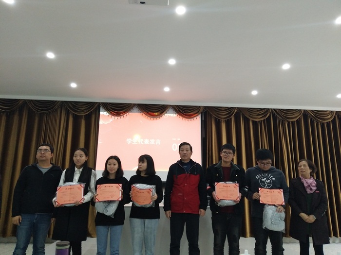 最后,校企领导给林艳霞、谢小梅、林晓洁、林嘉铭、谢培润等五位“优秀实习生”颁发了奖状与奖品、合影留念。表彰会在一片热烈的掌声中落下帷幕。