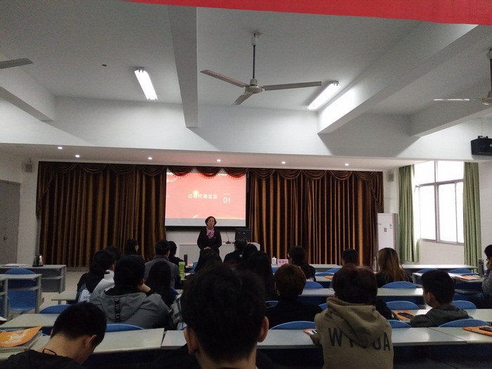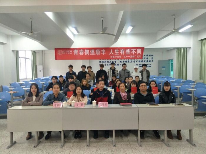 2018年11月23日早上十点半,商务系2017级电子商务2班“双十一”顺丰巅峰实训总结表彰大会,在我校教学楼阶梯二教室拉开了序幕。校实训基地福州顺丰速运集团人力资源部经理连海鹰及人力资源专员施湘钰、行政专员潘娟以及商务系郑禾主任、党支部书记毛永千老师、电子商务教研室主任陈晓芳老师、辅导员周清莲老师及上述班级全体同学参加了此次总结表彰大会。表彰大会由顺丰施湘钰专员主持。