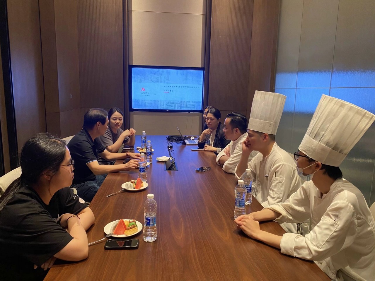 在交流座谈会上,实习学生们踊跃发言,分享着自己的实习经历与收获。他们提到,在酒店的实践过程中,得以将课堂所学的中西餐烹饪技艺、现代厨房管理等专业知识,切实运用到日常工作的各个环节。大家纷纷表示,由衷感谢学院搭建的优质实习平台,以及酒店给予的宝贵实践机会。其中一名西厨房实习生林泽宇,在实习期间,兢兢业业,认真学习的工作精神也得到了酒店领导的认可和肯定。被酒店评为魅力实习生。经过学习与成长,现在的泽宇不再是以前刚来的青涩实习生,更是可以独当一面的厨师,已经能独立负责行政酒廊的菜式出品。
