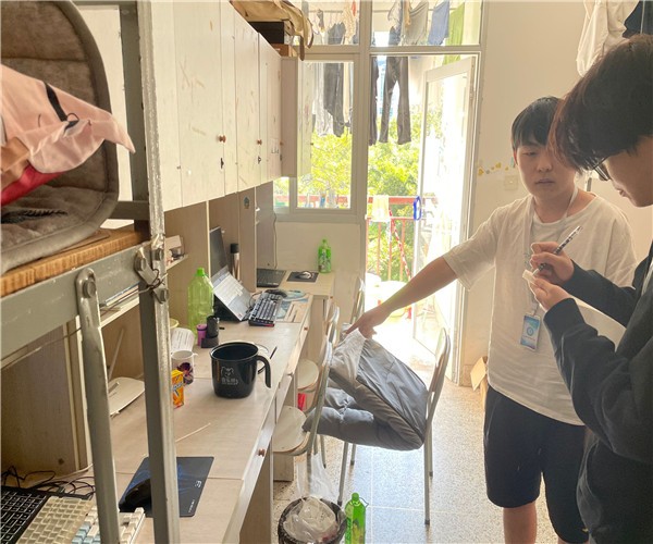 本次主要检查寝室用电安全、违禁电器等情况,通过排查发现,大多宿舍能够做到无安全隐患、内务整洁,起到了以查促改、以查促建。大多数宿舍安全状况良好,但仍有部分宿舍存在私自使用大功率违章电器的现象,进行登记,并通知其辅导员进行教育,避免再犯。宿舍安全是校园安全中重要的一环,是不容忽视的一个问题,宿舍起火的事情在全国各地频发,其根本问题是学生对其的不重视与忽视。本次的突击检查,也将在敲响学生心中的警钟,大大提高了宿舍用电安全。
