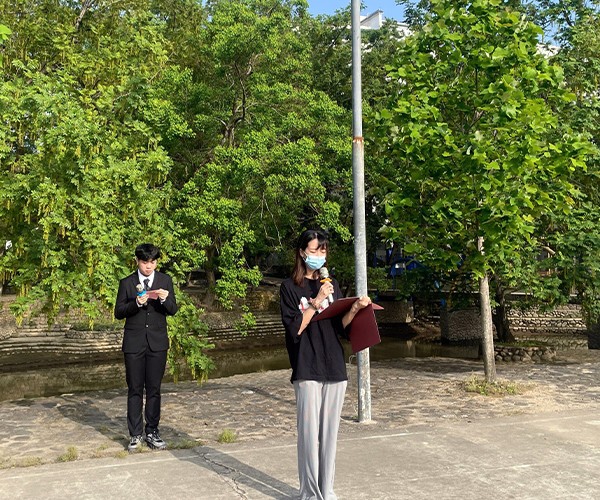 上午7点20分,升国旗仪式正式开始,护旗方队迈着矫健的步伐缓缓走向升旗台,伴着雄壮的国歌,师生们的爱国之情跟随五星红旗冉冉升起。随后,2020级学生代表黄以琳同学在国旗下围绕“请党放心 强国有我”主题进行发言。她围绕三个方面告诉大家要做个让党以及国家放心的青年,即首先要树立远大理想和正确的人生观;其次,要有明确的目标和科学的计划;最后,要养成良好的学习生活习惯,不断充实自己,完善自我,用飞扬的青春、跳动的热情来实现自己的梦想!