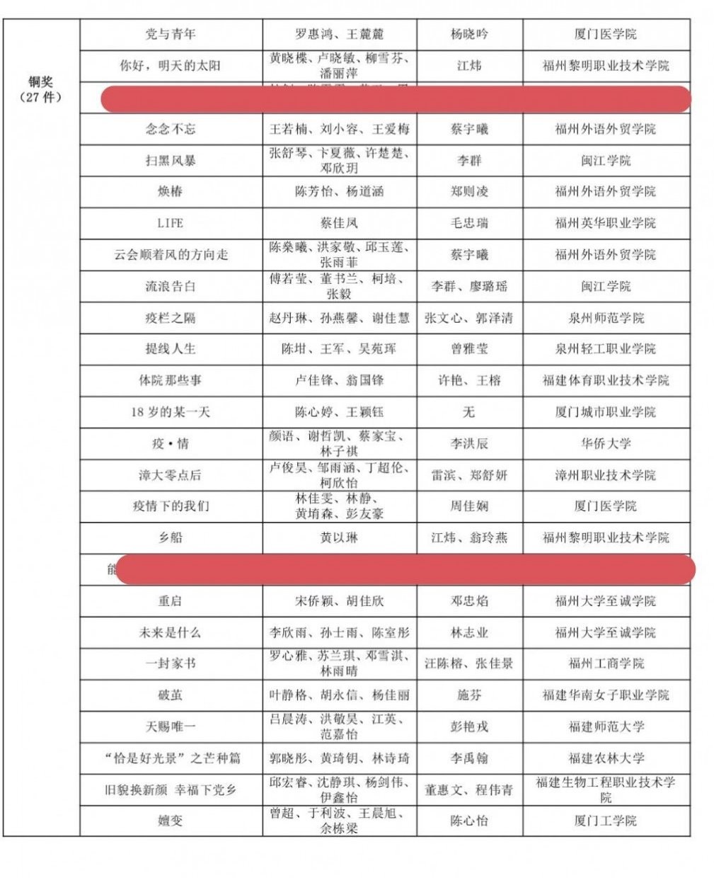 近日,福建省委教育工委、省教育厅印发《中共福建省委教育工委福建省教育厅关于第六届福建省校园微拍大赛获奖名单的公示》,公布了第六届福建省校园微拍大赛获奖结果。