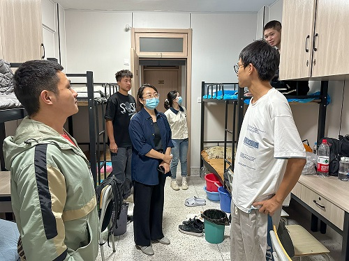 走进新生宿舍,老师们对大家的到来表示热烈的欢迎,在看望过程中,每到一个宿舍老师们亲切地与学生进行交谈,详细询问新生们对新环境的适应情况,嘱托同学们注意宿舍卫生和安全,有任何问题和困难及时询问辅导员和老师。同时,老师们还详细了解了学生们的暑假生活等情况,从衣、食、住、学各方面予以关心,耐心解答大家提出的各种问题,认真倾听学生们的需求。
