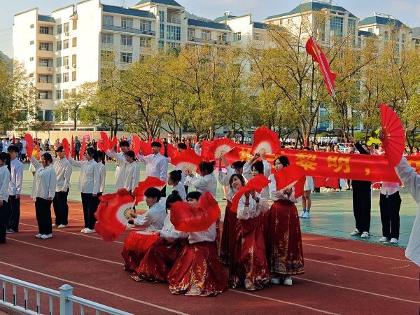 紧接着,迎面走来的是我系的第二方阵,他们身着古朴典雅的汉服,尤为引人注目。他们的动作行云流水、充满力量,举手投足间尽显青春的活力与自信。他们的表演不仅让操场弥漫着浓厚的文化氛围,更展现了祖国的文化底蕴和我们昂扬向上的精神风貌,成为操场上最为耀眼的风景线。