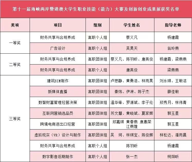 喜报|我院在第十一届海峡两岸暨港澳大学生职业技能(能力)大赛及创新创业成果展中取得佳绩