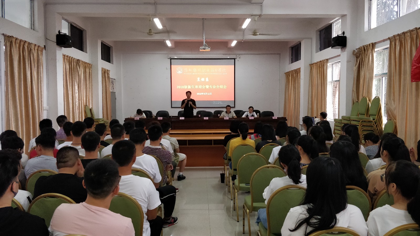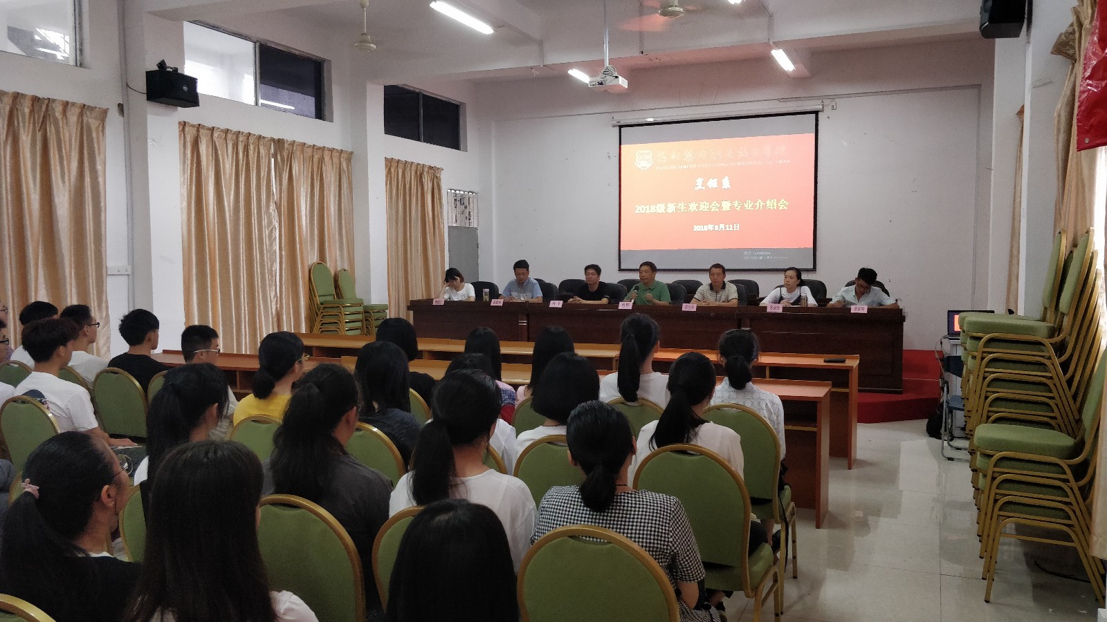 2018年9月11日,新生报到的第二天,上午我系就在活动室召开了隆重的新生见面会和专业介绍会。