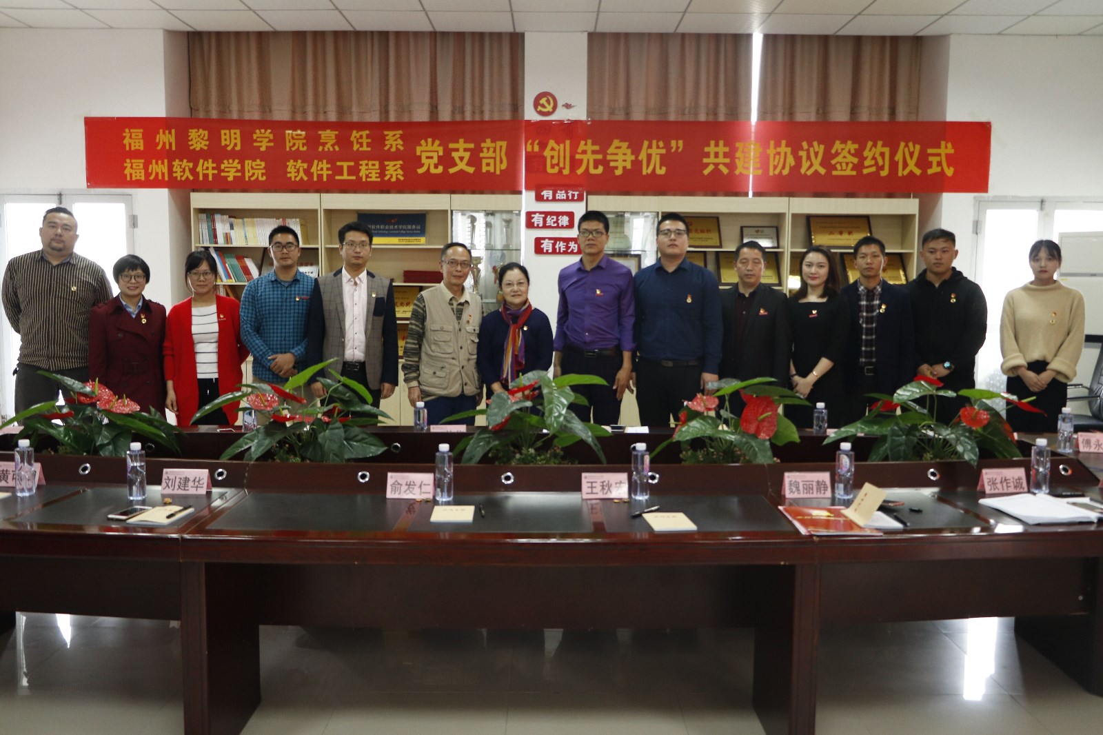 为深入学习贯彻习近平新时代中国特色社会主义思想和党的十九大精神,进一步提升基层党组织的创新能力。12月6日下午,烹饪系党支部与福州软件学院软件工程系党总支开展结对共建活动,并签订共建协议。学院王苏华董事长、学院党委刘鹏副书记以及福州软件学院领导俞发仁、王秋宏、刘建华等出席共建会。